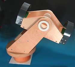 Two sleeve bearings were turned from delrin. They allow the cradle to move smoothly, with no incremental slip-stick or backlash.