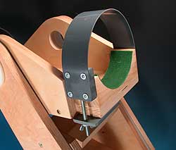 edge of one of the teflon pieces in this photo on the left. The gray plastic straps are made from butyrate. I chose plastic because I didn't want to mar the surface of the antique